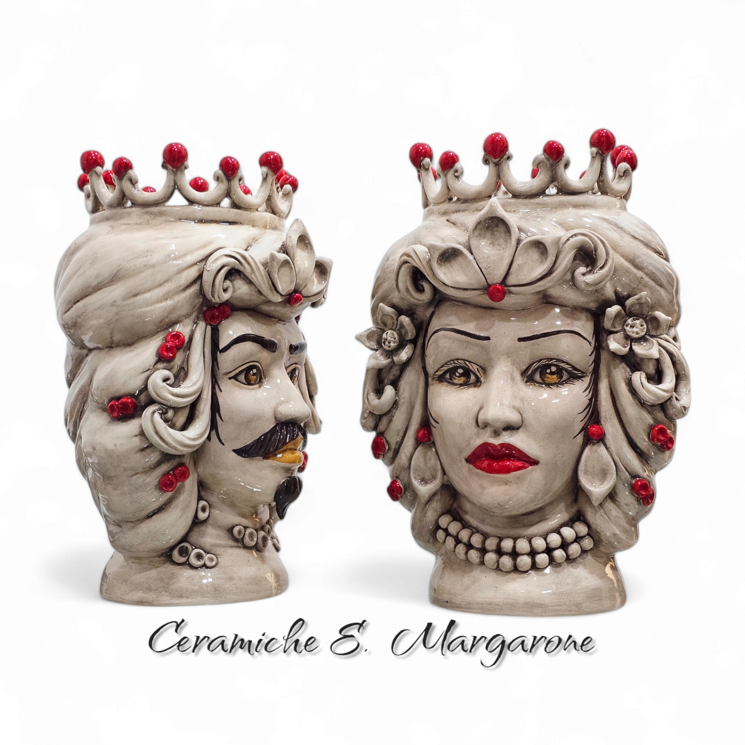 Coppia Teste di Moro Ceramica Siciliana Caltagirone Fumè Colorata 28.cm